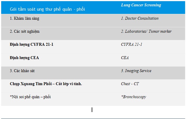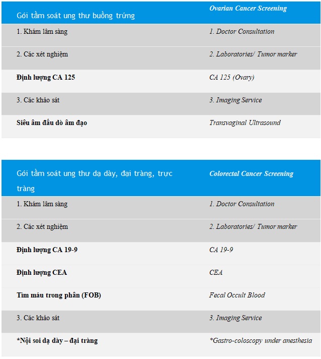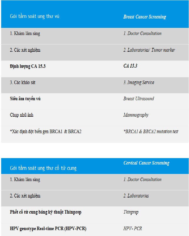 * Những xét nghiệm có thể được thực hiện dựa theo độ tuổi, tình trạng bệnh sử cá nhân và gia đình theo chỉ định của bác sĩ.